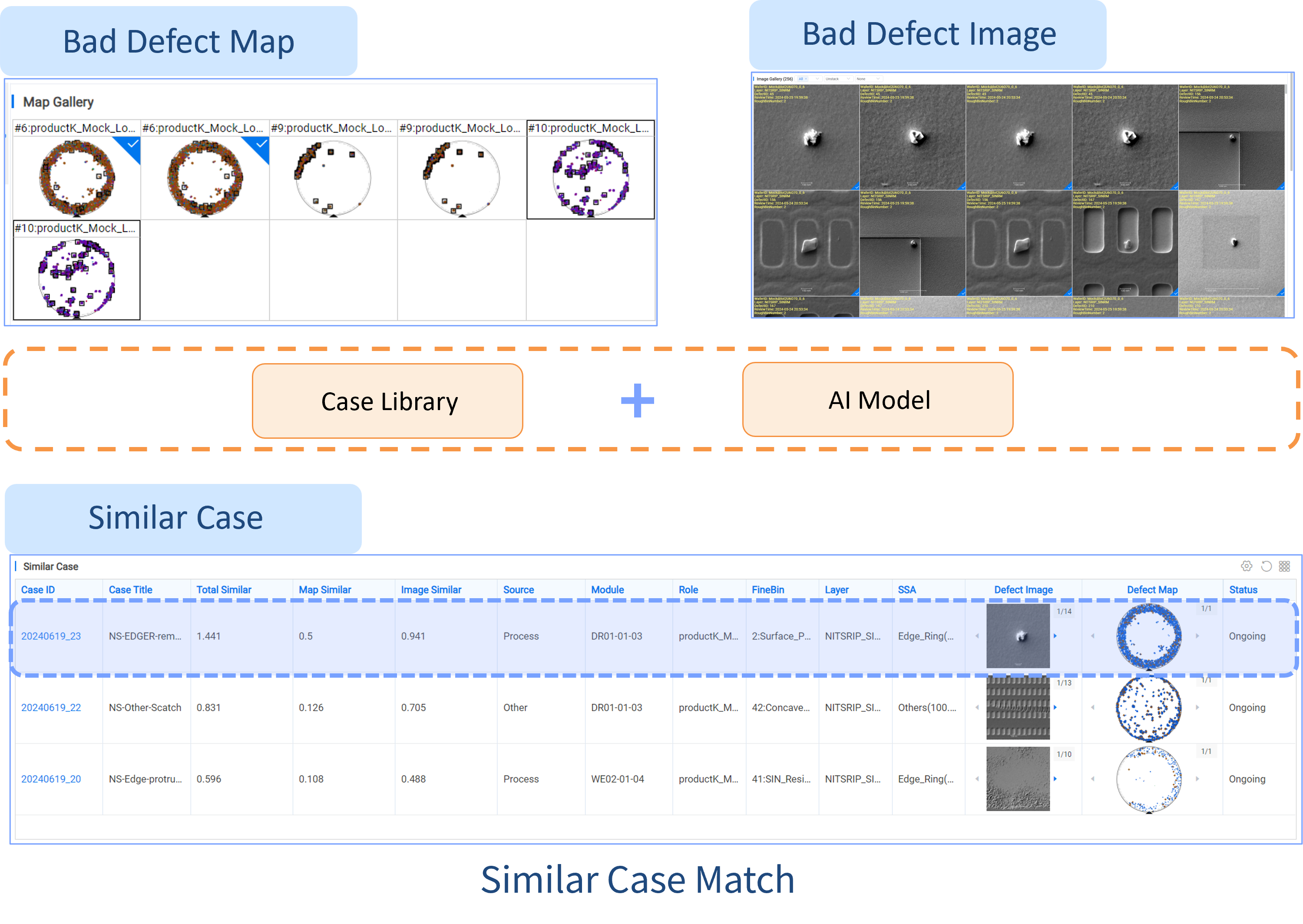 线上DefectCase的处理在很⼤程度上依赖⼯程师的经验,数据的捞取和整理也需投⼊⼤量的人力。55世纪微DE-iCASE深度融合AI模型,结合Case知识库,可实现异常状态的⾃动溯源。DE-iCASE提供了告警,分析,追踪,归档的全流程服务,Case匹配耗时仅为秒级。